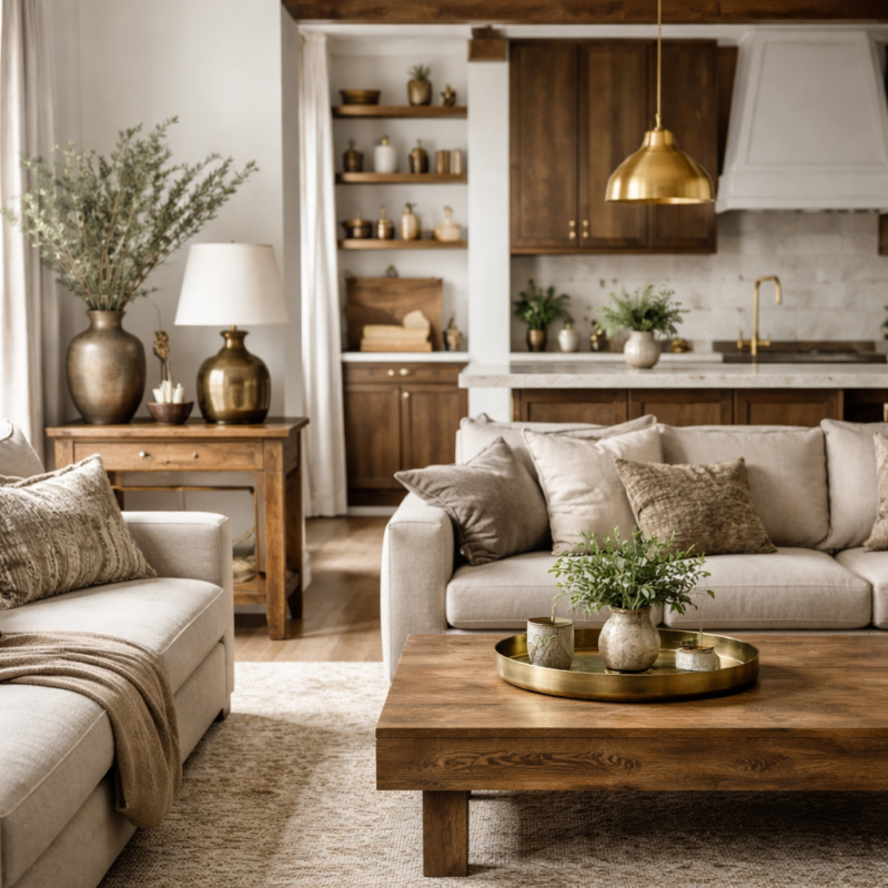 Vous rêvez d’un intérieur rustique‑moderne qui respire la chaleur, l’élégance discrète et la confiance tranquille que vous voulez dégager en accueillant chez vous. Le défi est réel : comment ajouter des accents métalliques sans perdre le confort émotionnel du bois, ni basculer dans un style trop froid ou trop chargé ?