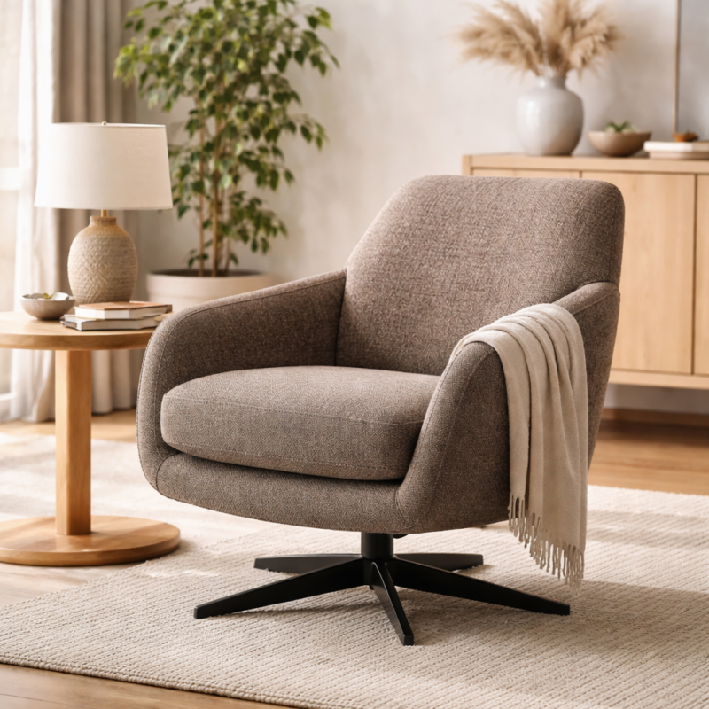 Vous hésitez entre esthétique et confort quand il s’agit d’un nouveau fauteuil pour votre salon ? C’est une question très courant chez celles qui souhaitent que leur intérieur reflète à la fois leur goût et leur besoin de bien-être. Le fauteuil rotatif MEMENTO en tissu chiné marron promet une harmonie entre élégance discrète et confort quotidien — une promesse qui parle aussi au besoin de confiance en soi face au regard des autres et au désir d’un refuge émotionnel dans son propre espace.