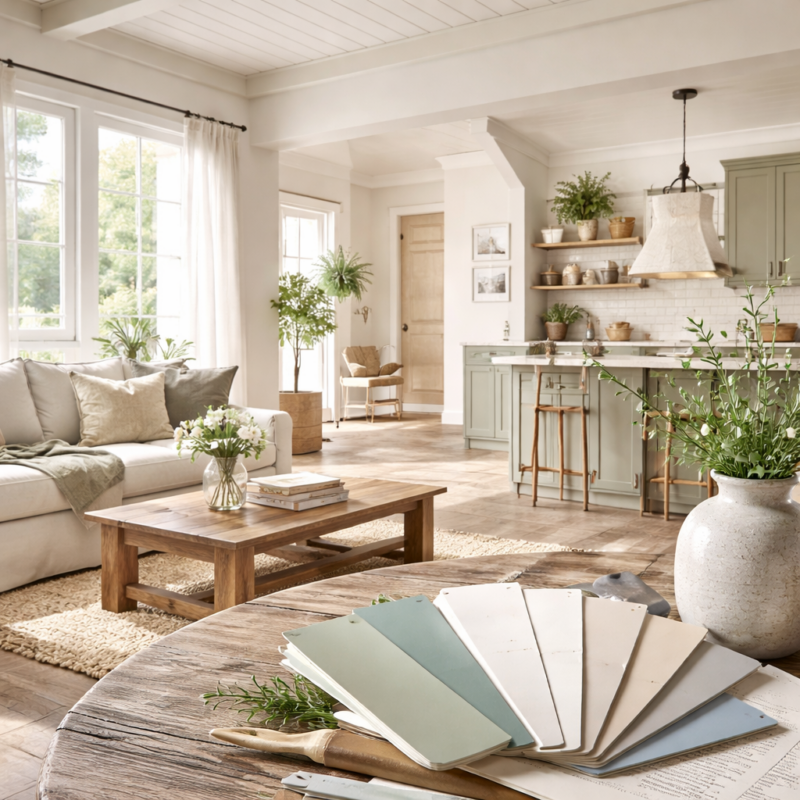 Palette peinture maison moderne fermette — Inspirations Sherwin‑Williams 2025 pour toute la maison, ambiance cottage
