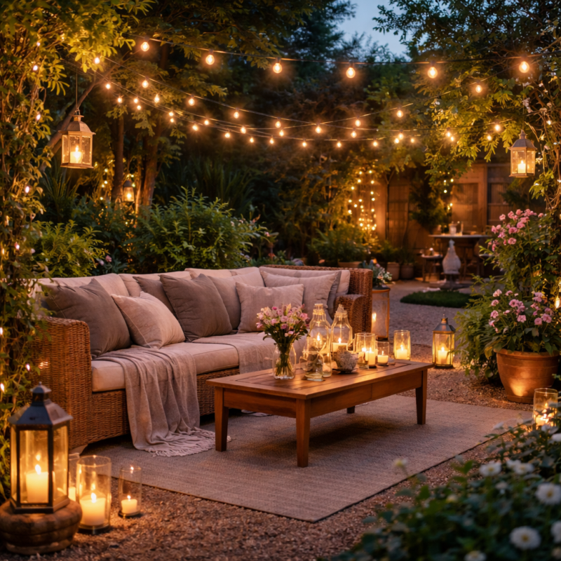 Je vous propose des pistes pratiques — éclairage, mobilier, plantations et organisation — illustrées par des situations réelles (dîner entre amies, soirée intime, moment de lecture au crépuscule). L’objectif : vous donner des leviers simples pour créer une atmosphère féerique qui renforce votre confort émotionnel, apaise le regard des autres et nourrit une transformation intérieure discrète mais durable.